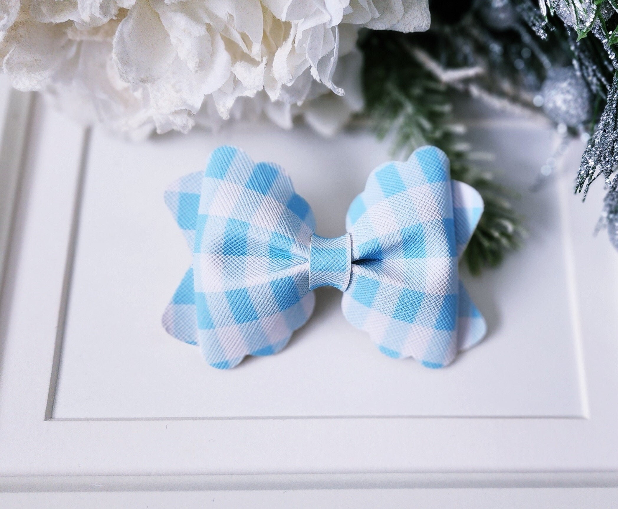 Blue Gingham Bow Clip: Trendy Alligator Hair Clip
