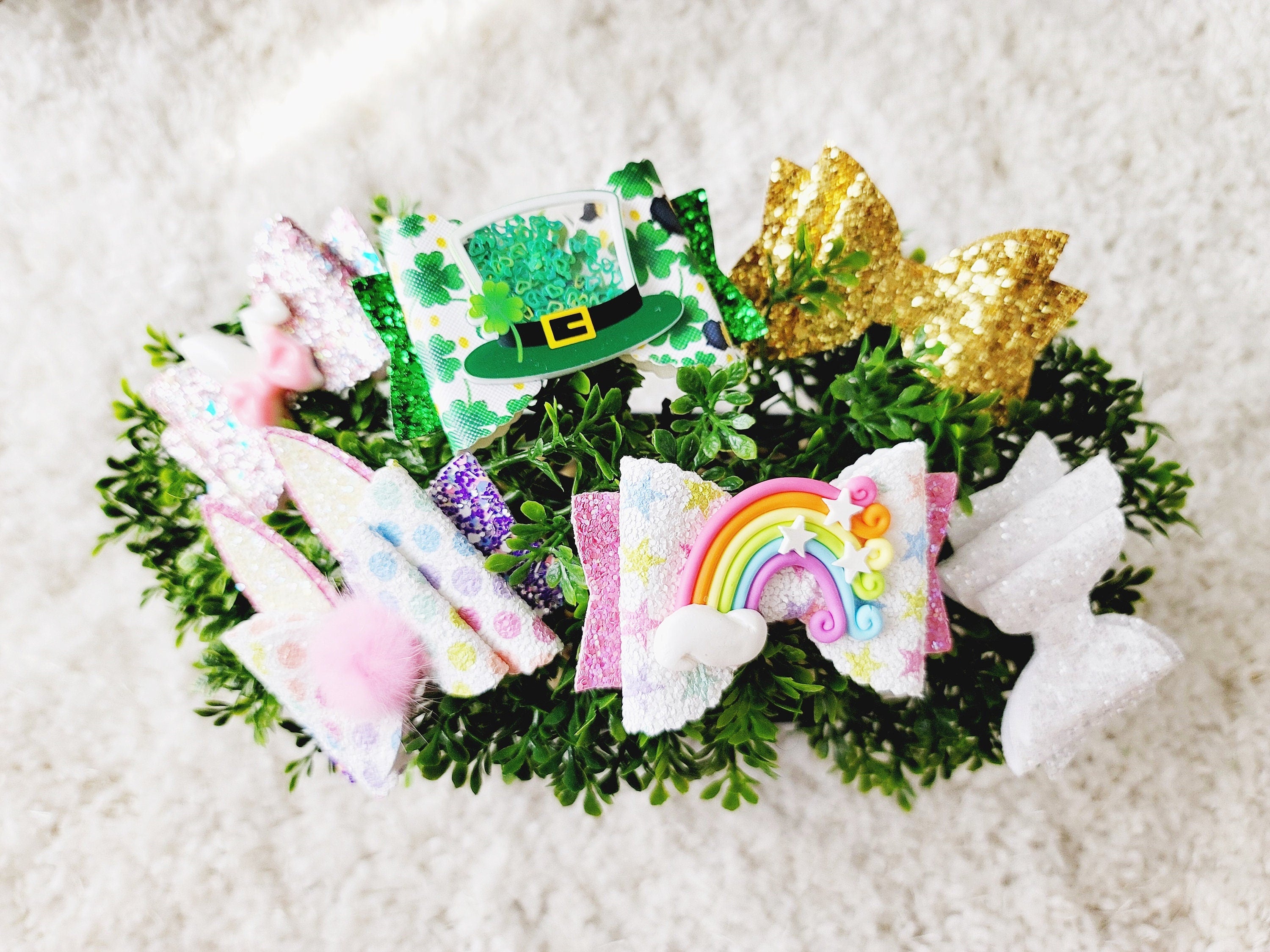 Rainbow Glitter Star Bow Clip: Metallic Alligator Clip