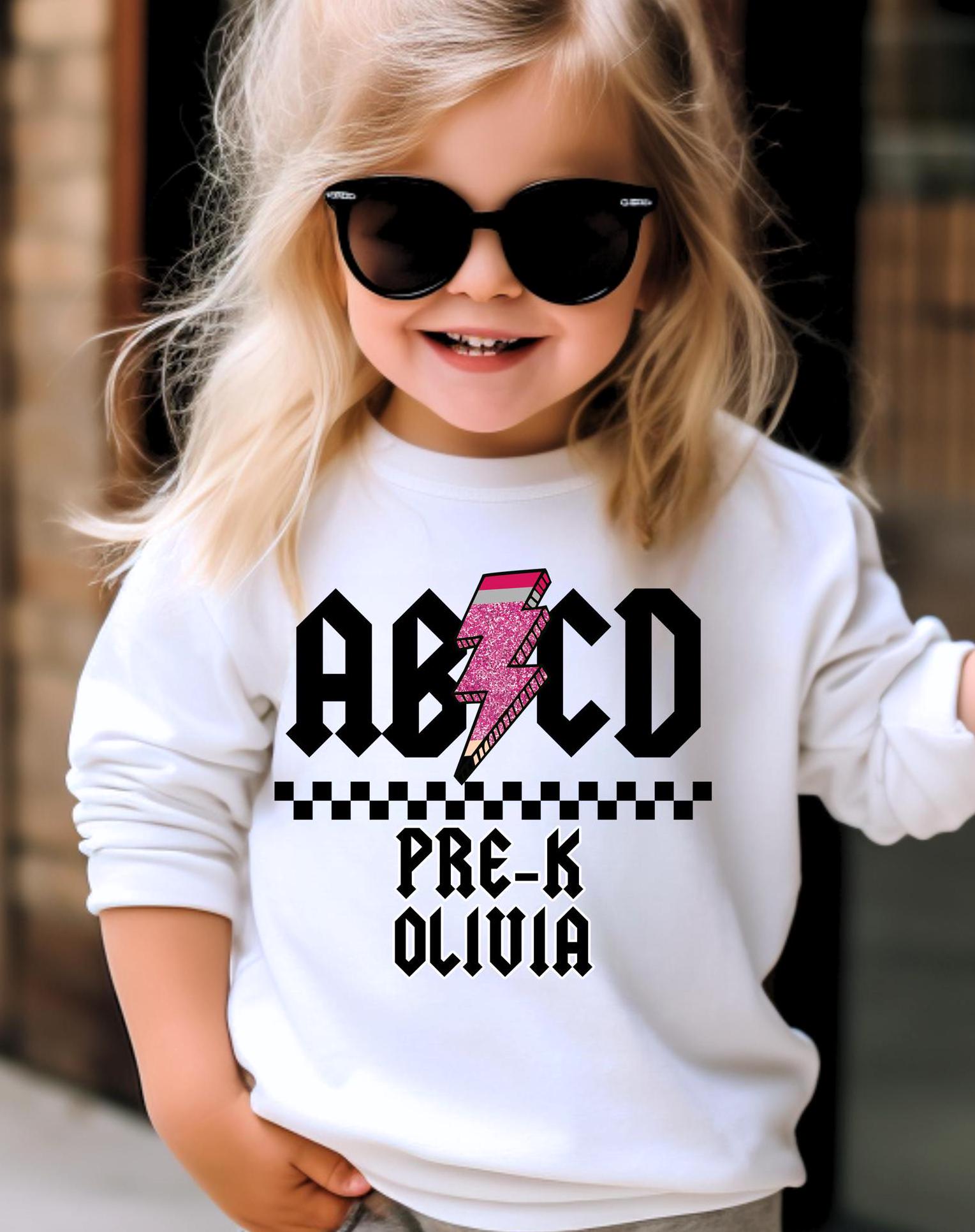 Personalized School Shirt: Metal Rock ABCD Faux Glitter, Teacher Shirt