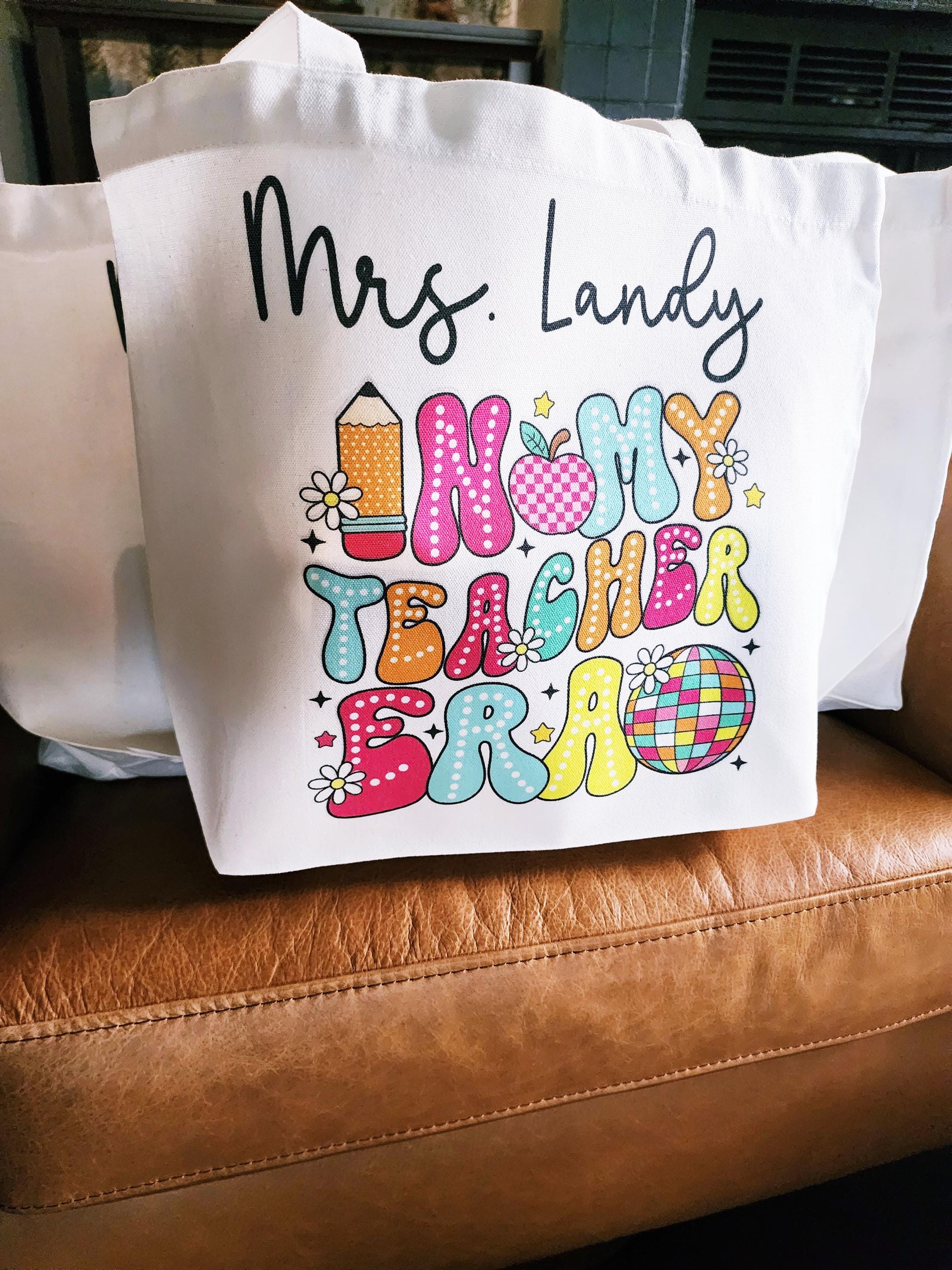 Personalized Teacher Tote Bag: "In My Teacher Era" Canvas Gift