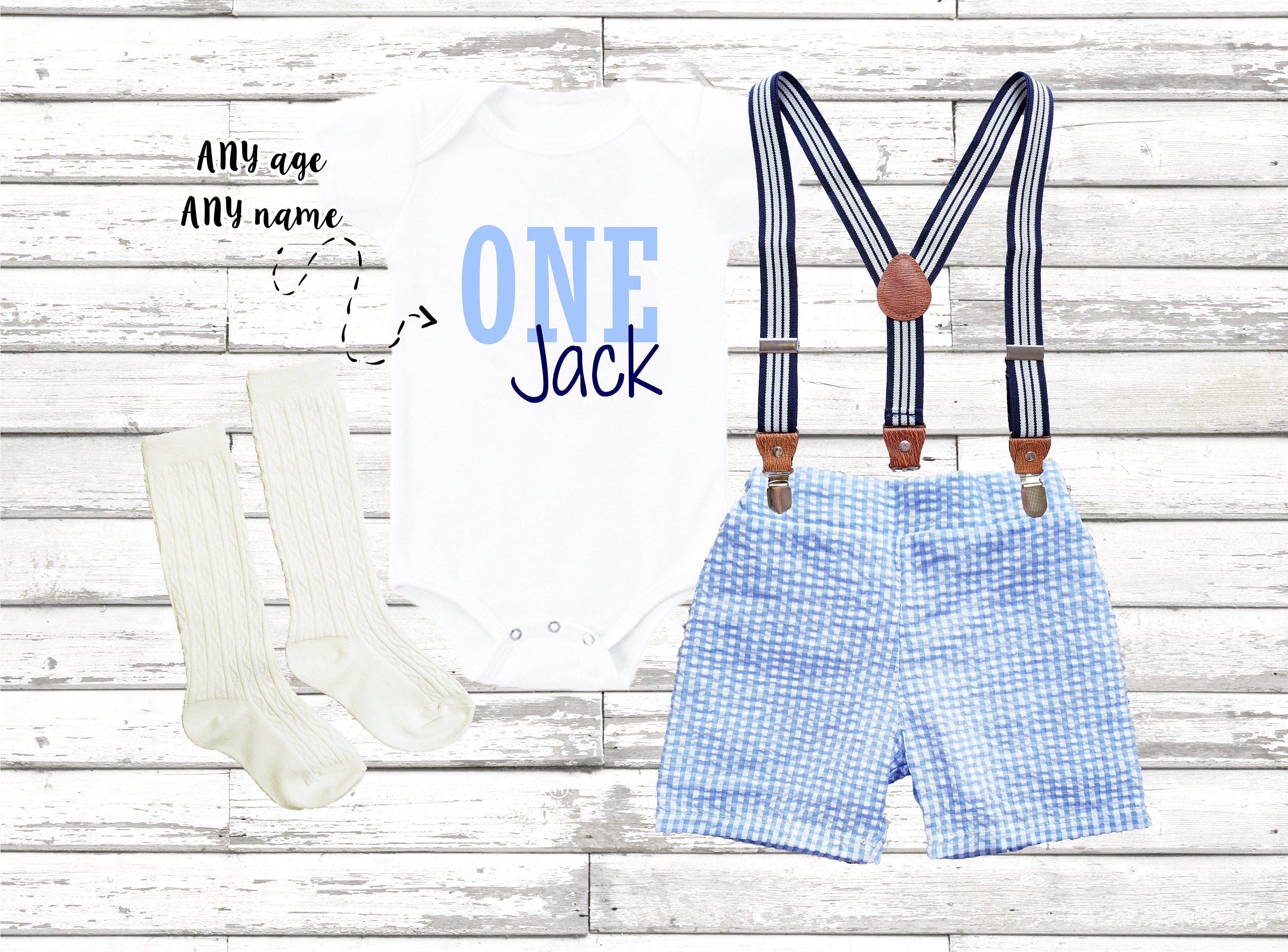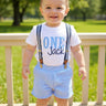 1st Birthday Boy Outfit: Seersucker Shorts, Suspenders & Bodysuit