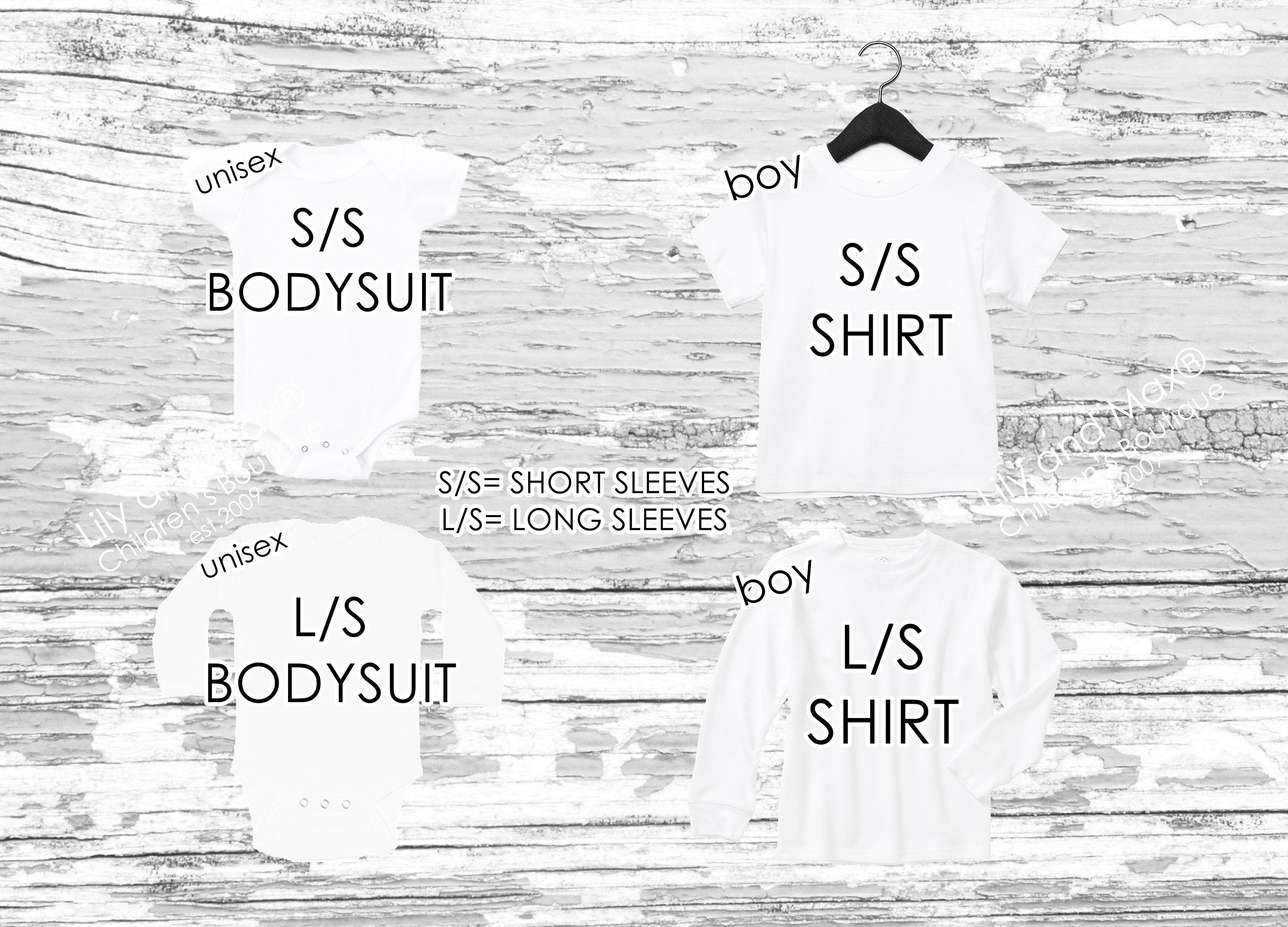L/S= Long Sleeves - long sleeves available only in regular bodysuits.