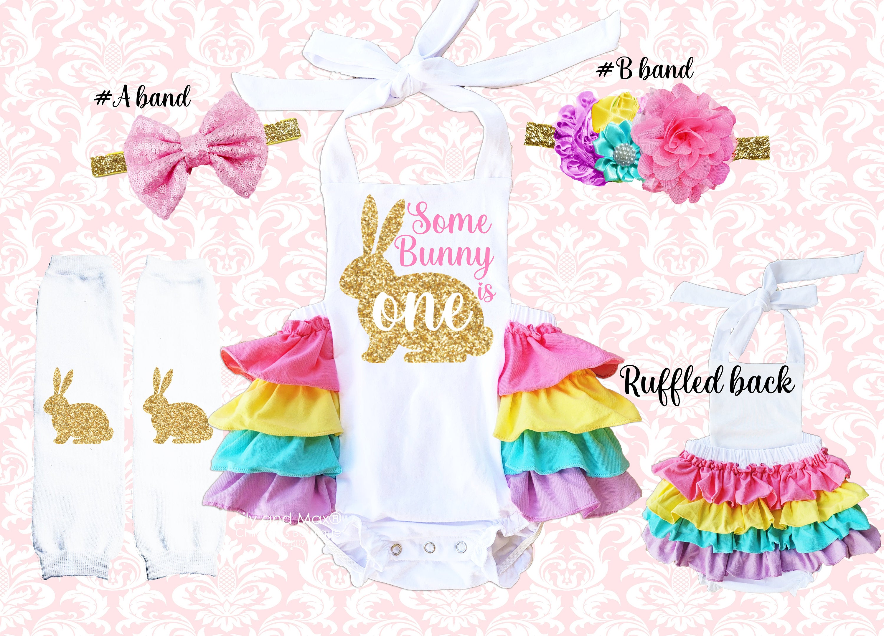 1st Birthday Easter Romper: Rainbow Bunny Outfit