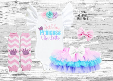 1st BIRTHDAY girls outfit, Birthday Princess girls tutu bloomer outfit, birthday princess girls smash cake outfit, flutter sleeve leotard