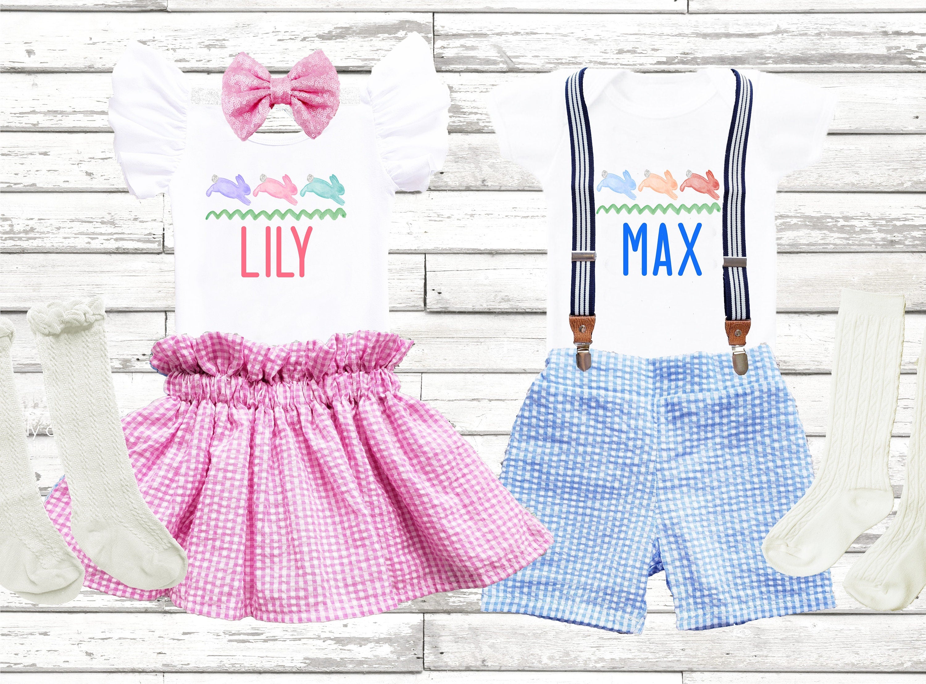 "Personalized SEERSUCKER BOY OR GIRL OUTFIT SET"