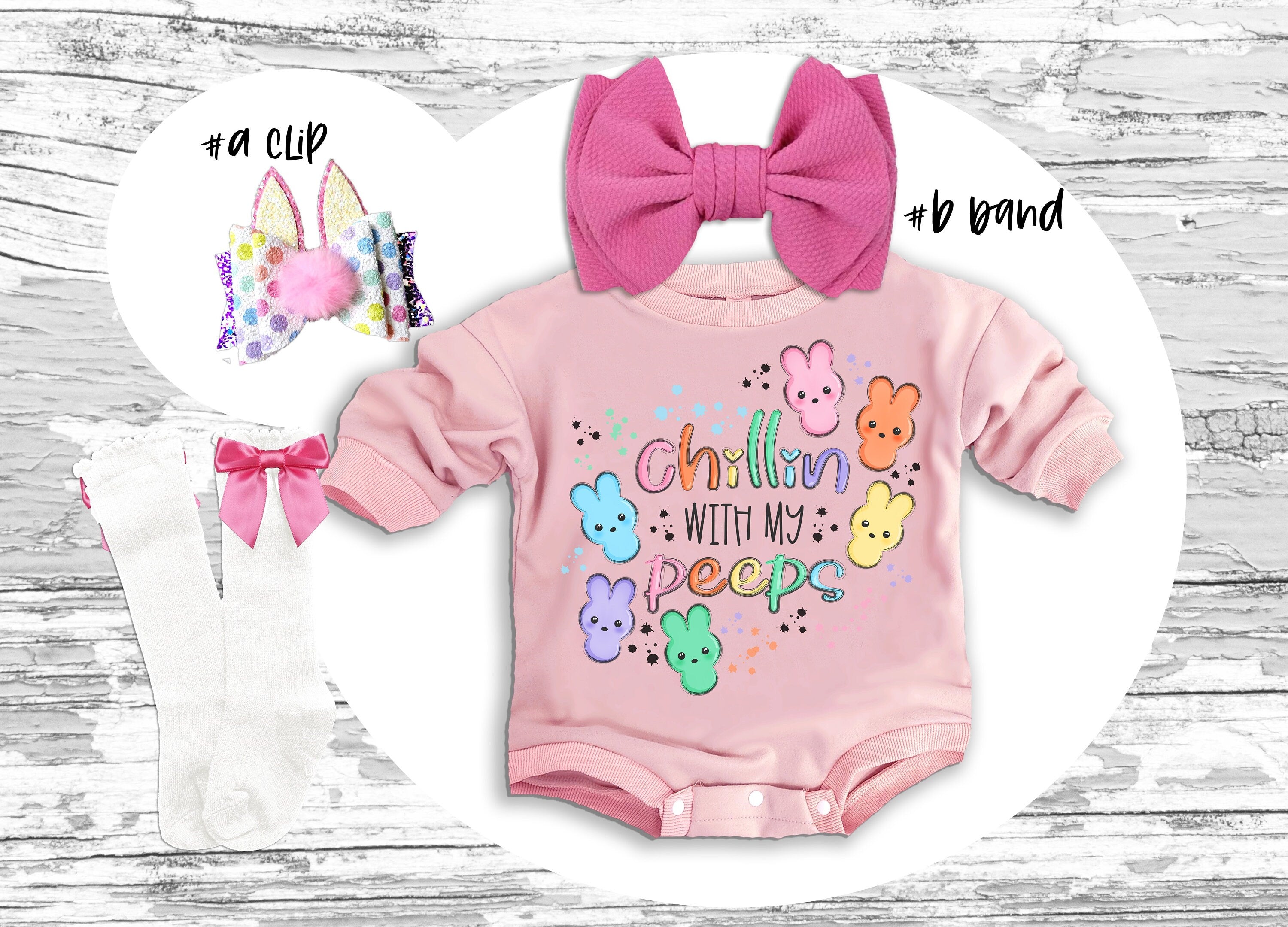 Peeps Easter Baby Outfit: Romper, Bow Clip, Headband & Socks