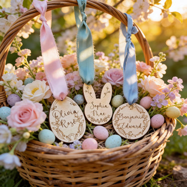 Personalized Easter Basket Tag: Engraved Wooden Bunny, Egg, Round