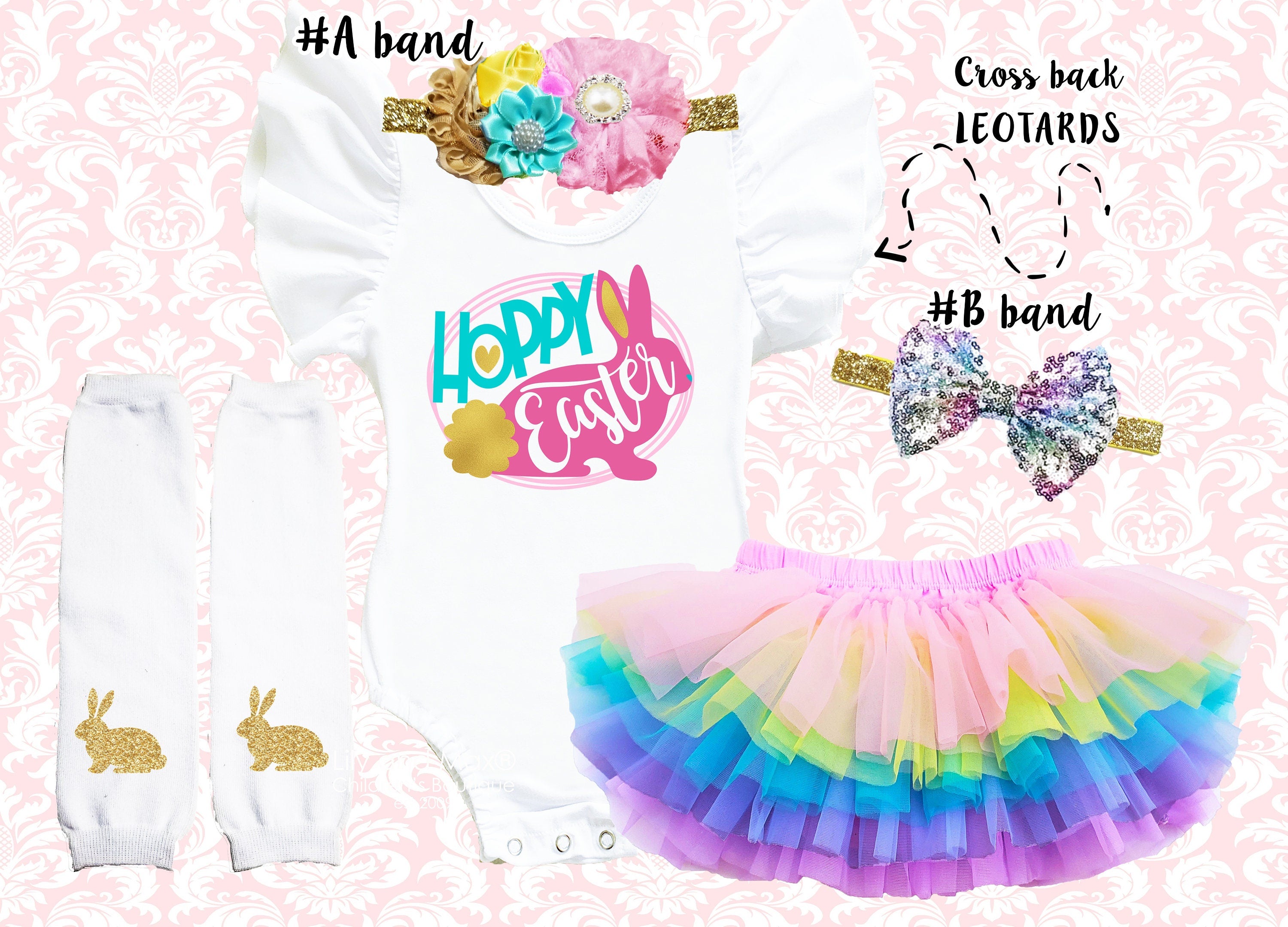 Personalized Easter Bunny Tutu Bloomer Outfit: Flutter Sleeve Leotard, Headbands