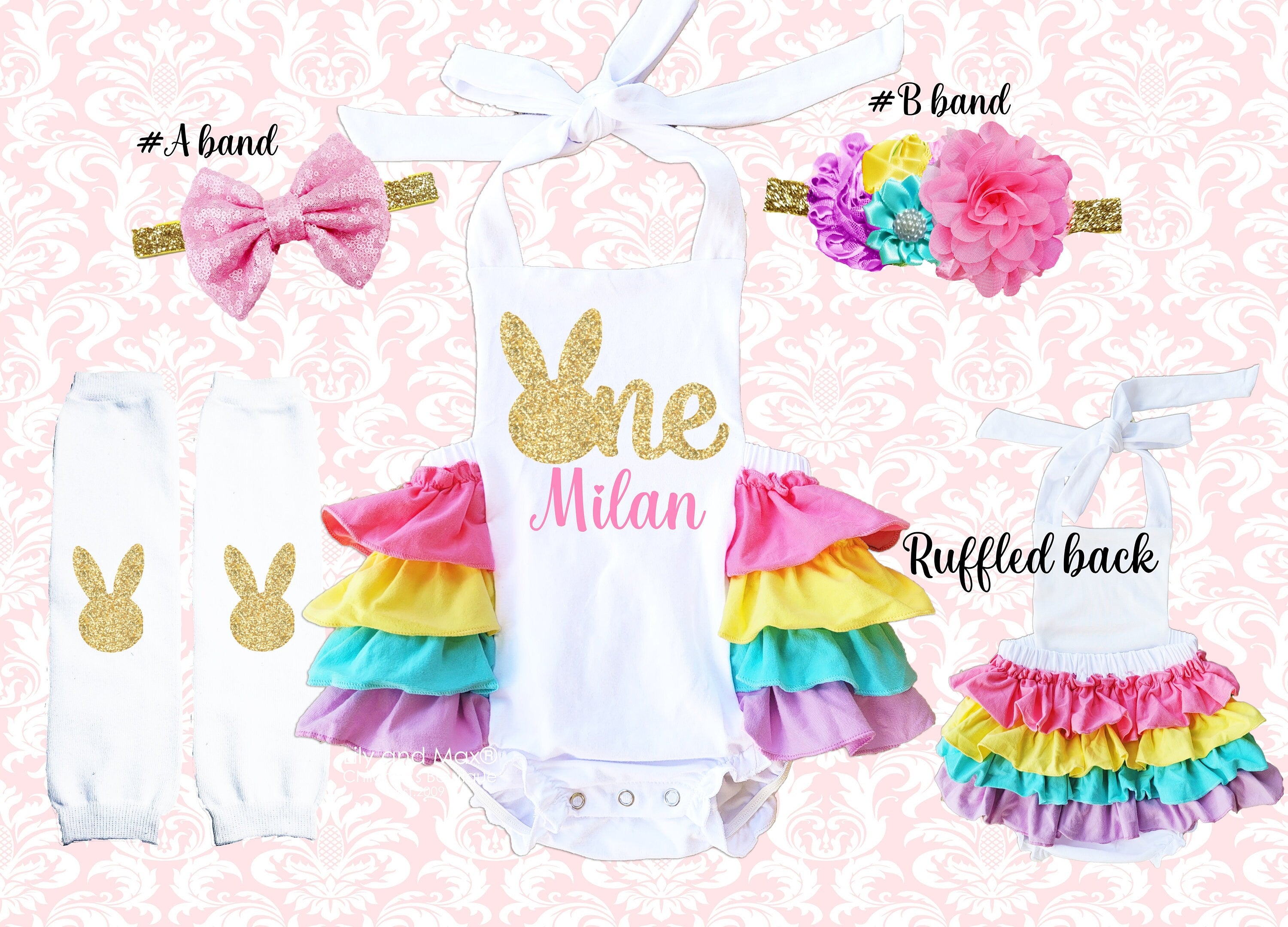 Rainbow Bunny Romper, First Birthday Easter Outfit