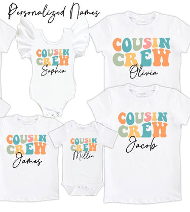 Personalized Cousin Crew Kids Shirt Bodysuit | Retro Matching Cousins Shirts for Vacation & Family Trips