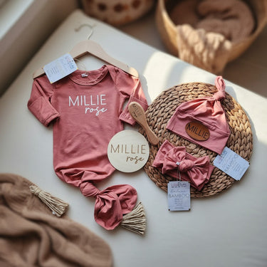 Personalized Knotted Baby Gown: Custom Newborn Gift Set