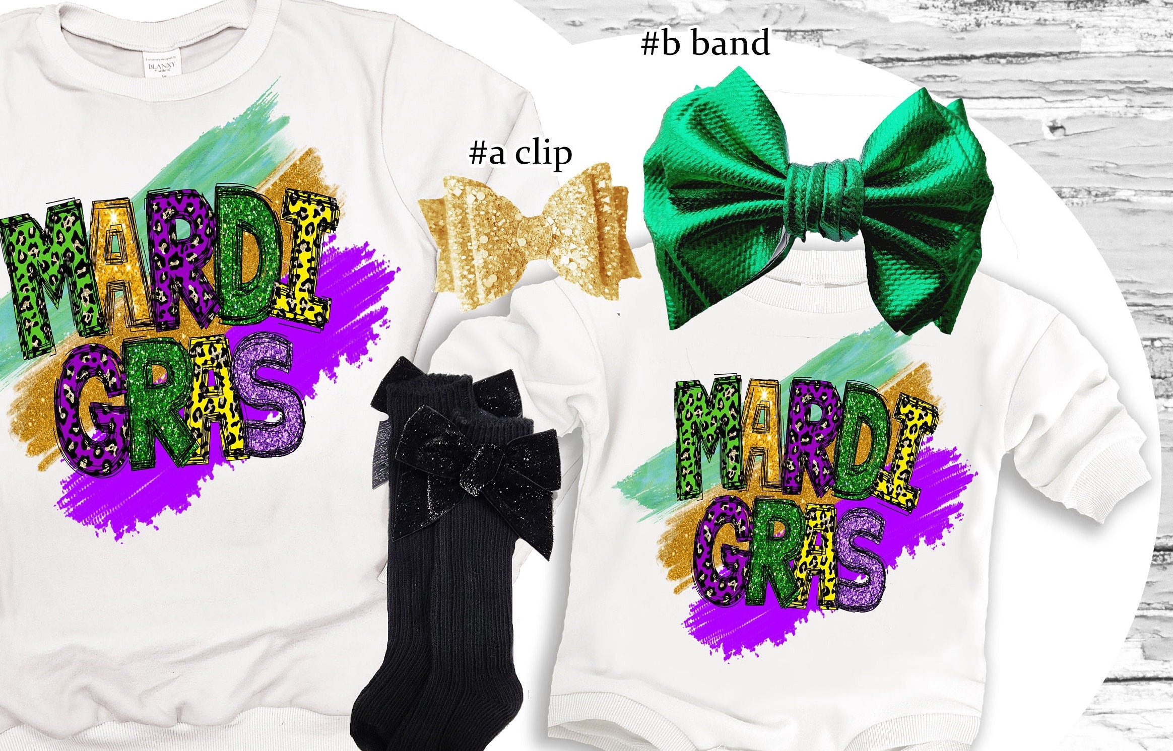 Mardi Gras Baby Outfit: Romper, Headband, Socks & Clip Set