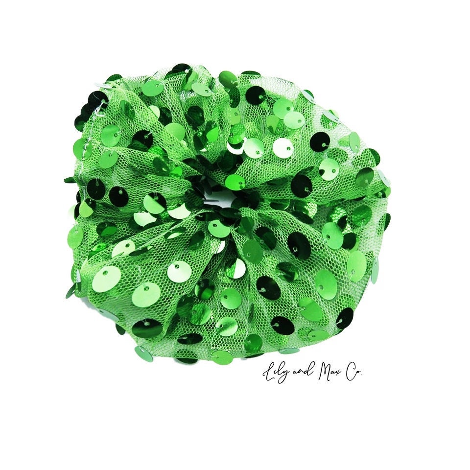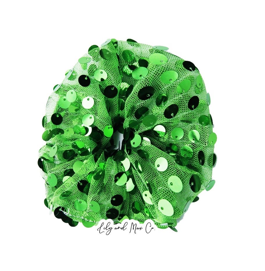 St. Patrick's Day Sequin Scrunchie: Green Holiday Hair Tie