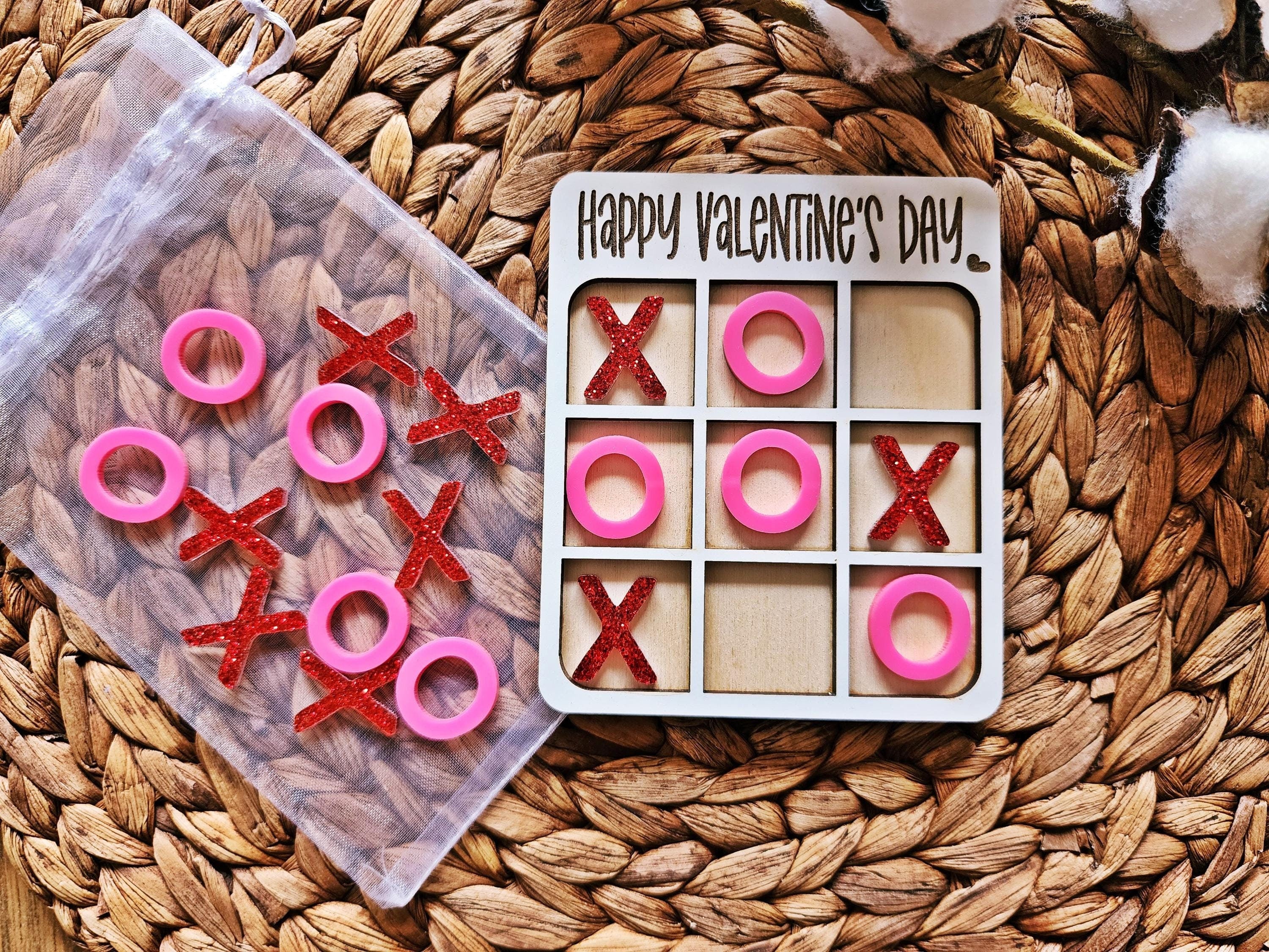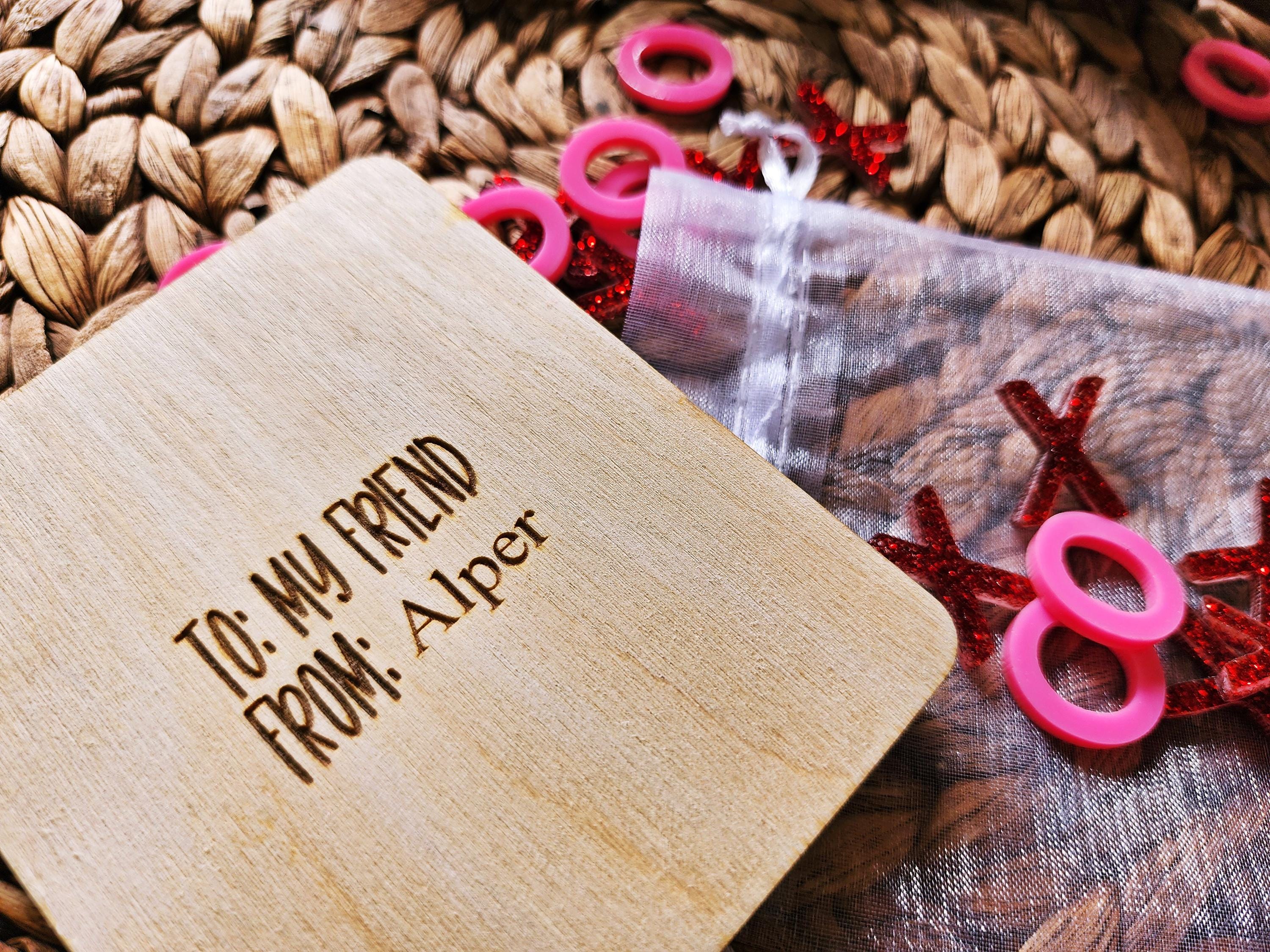 Engraved Wooden Valentine's Day Tic Tac Toe Puzzle: XOXO Gift