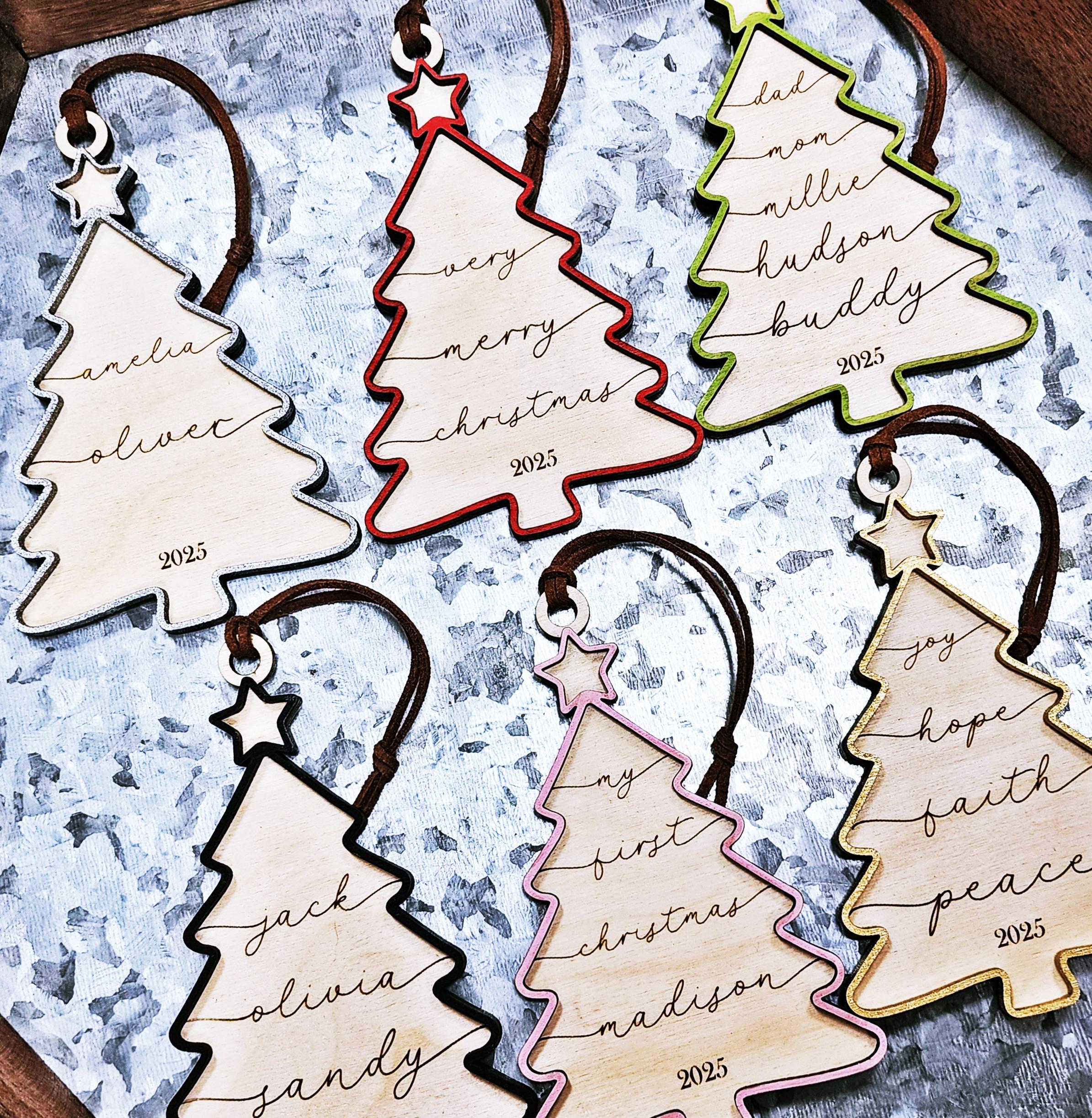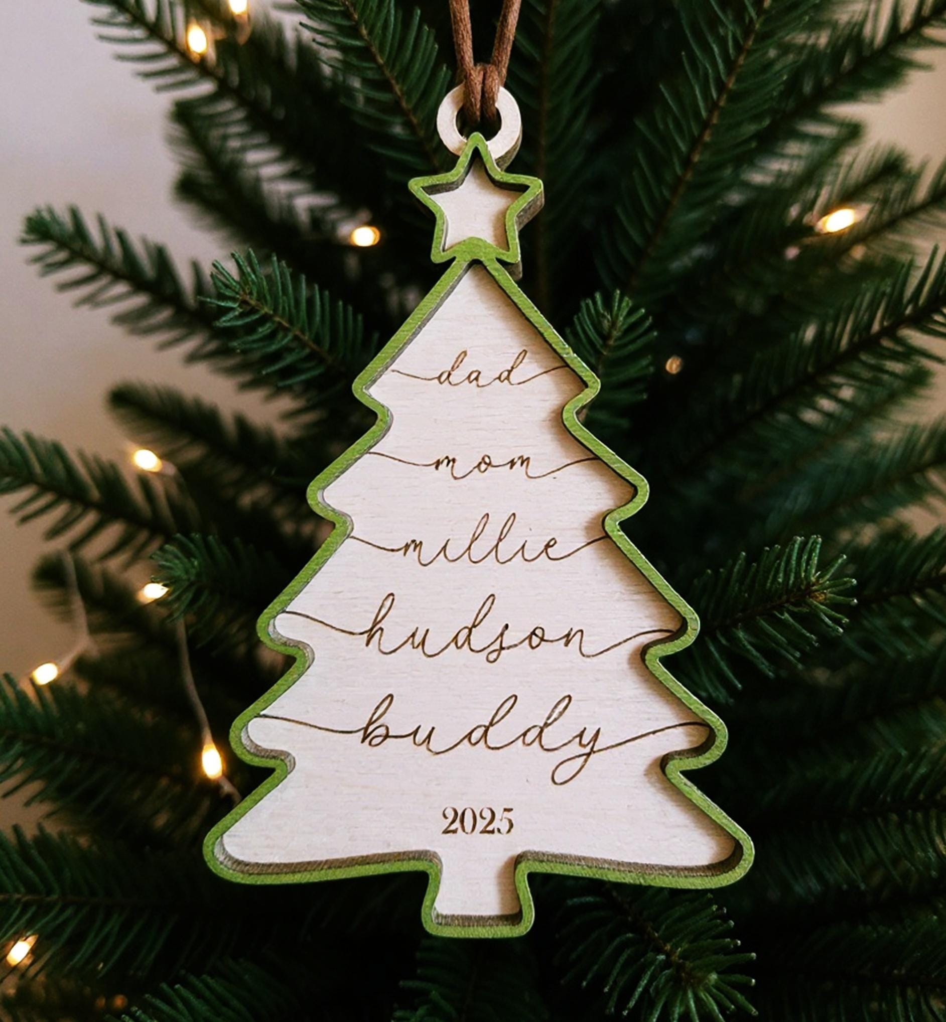 Family Christmas Ornament, 2025 Engraved Birch Wood Holiday personalized tree Keepsake