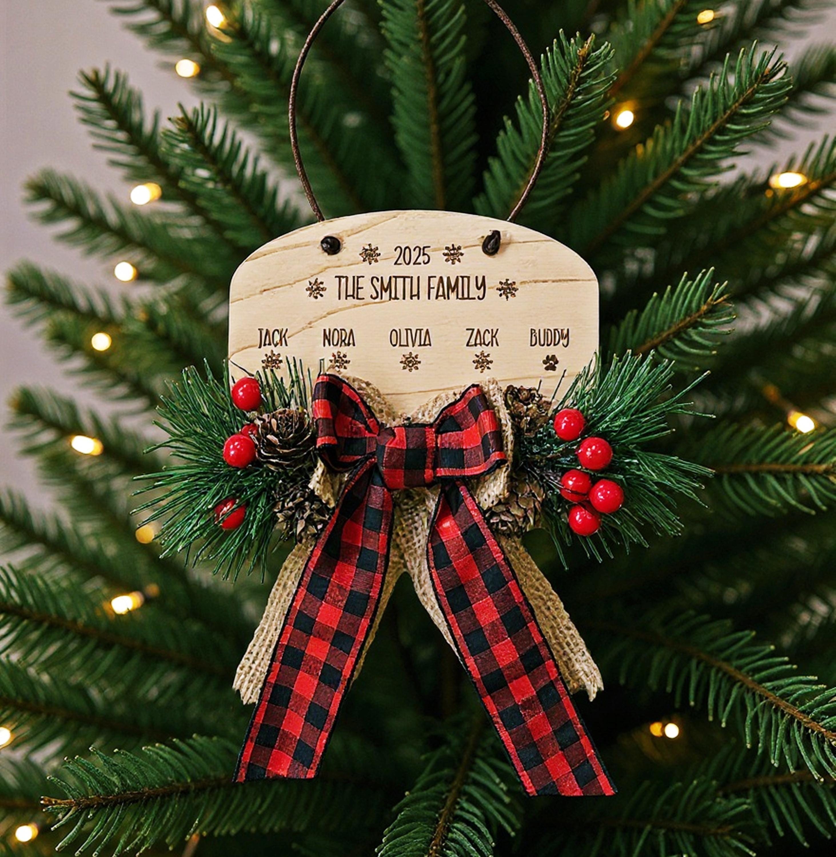 Personalized Family Christmas 2025 Ornament, Engraved 3D pine Birch Wood Holiday tree Keepsake