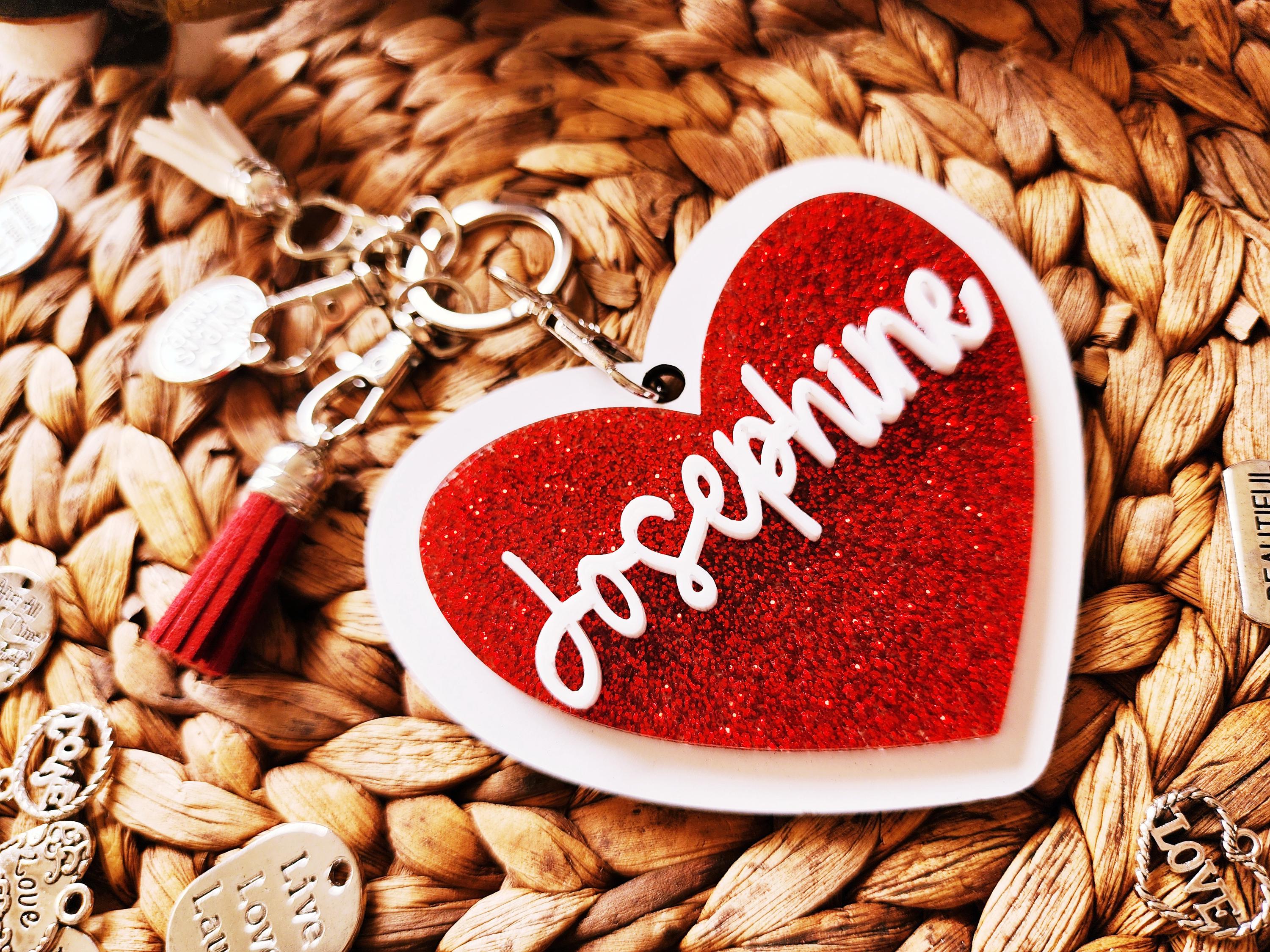 Personalized Red Glitter Heart Keychain, Free Charm, Valentine Gift