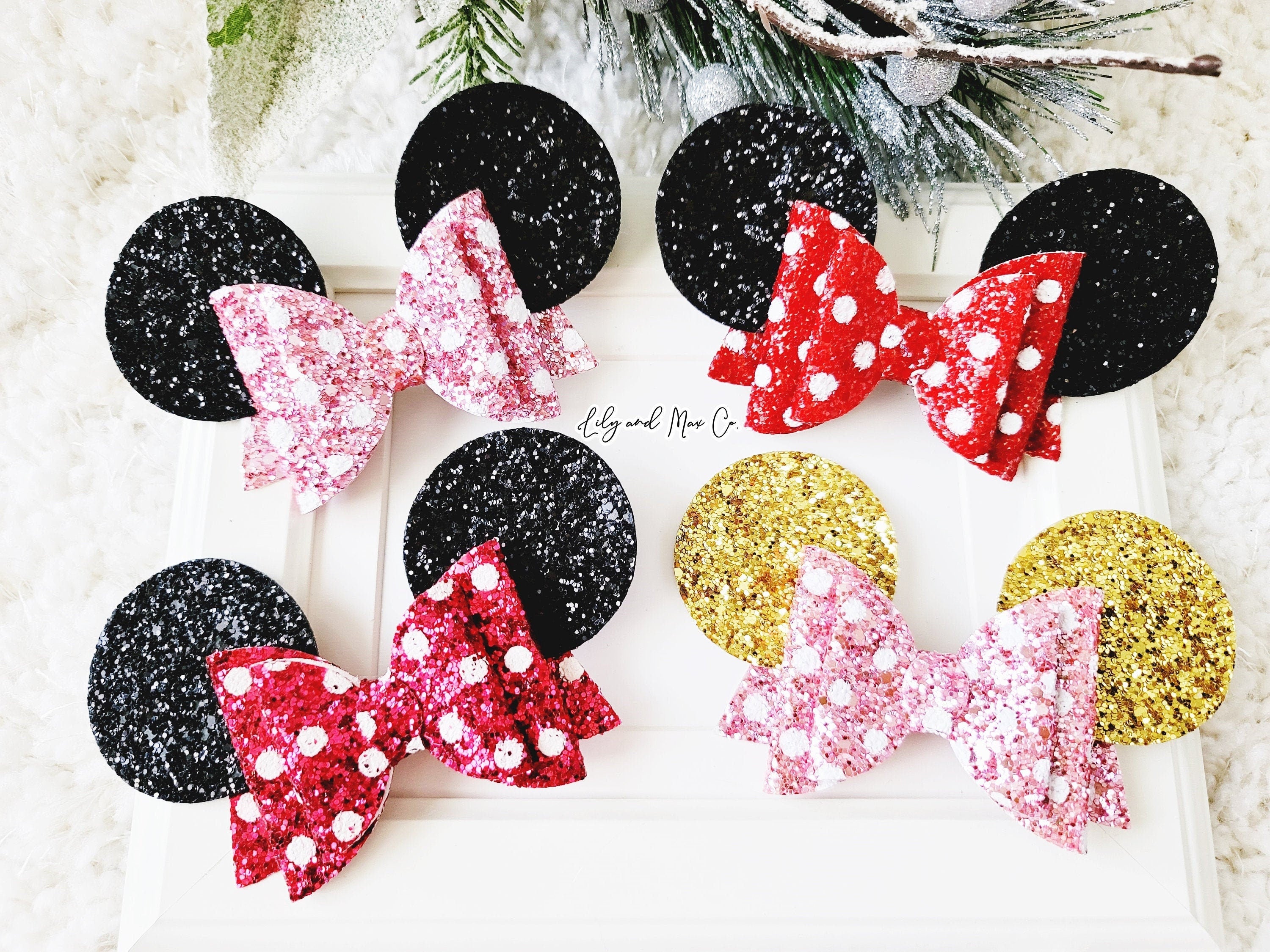 CLIP: Premium quality trendy glitter mouse ear bow clip colors approx. 3.5-4 inches on alligator clip