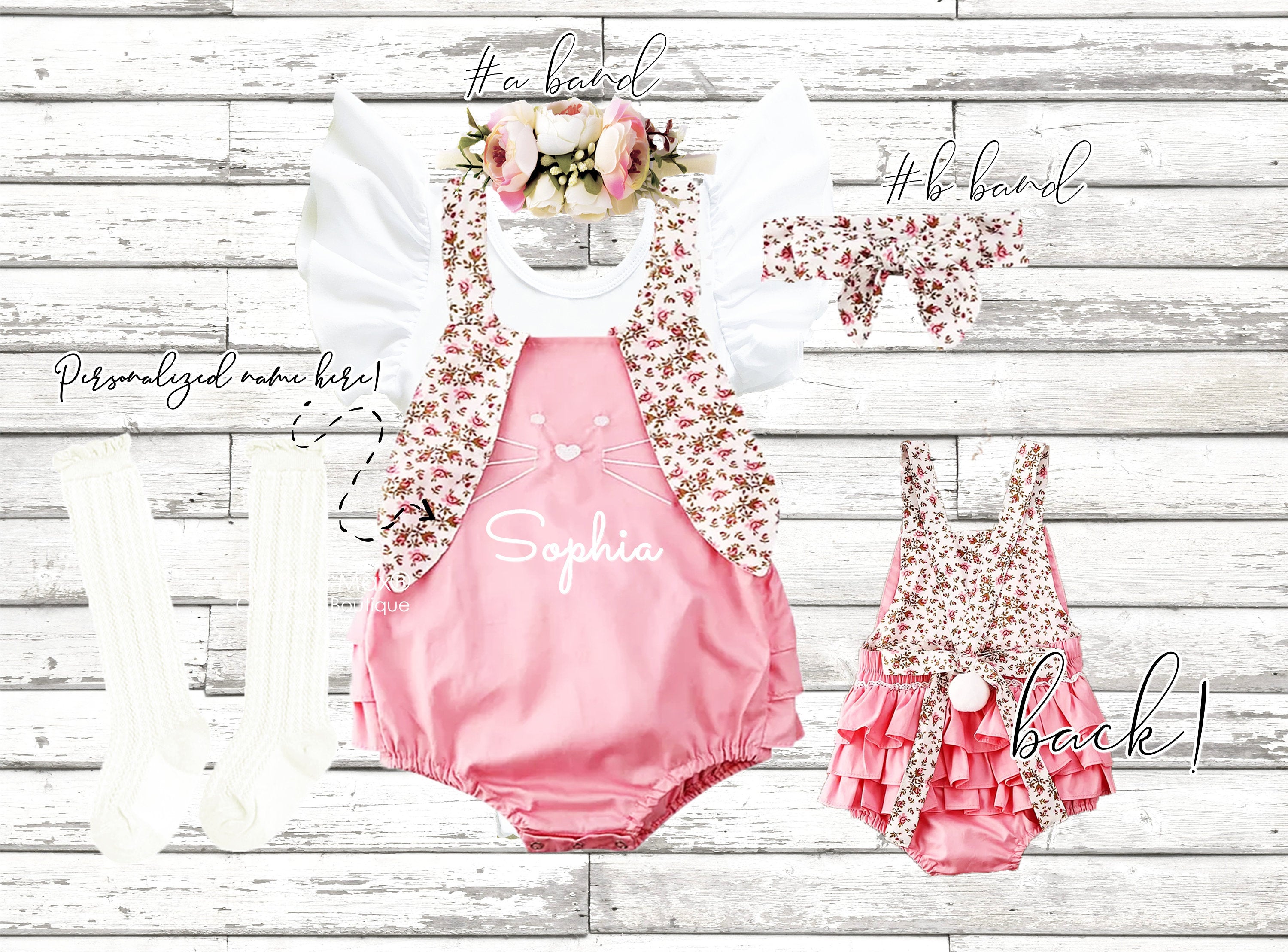 Bunny Pom Pom Romper Set: Easter Baby Girl Outfit