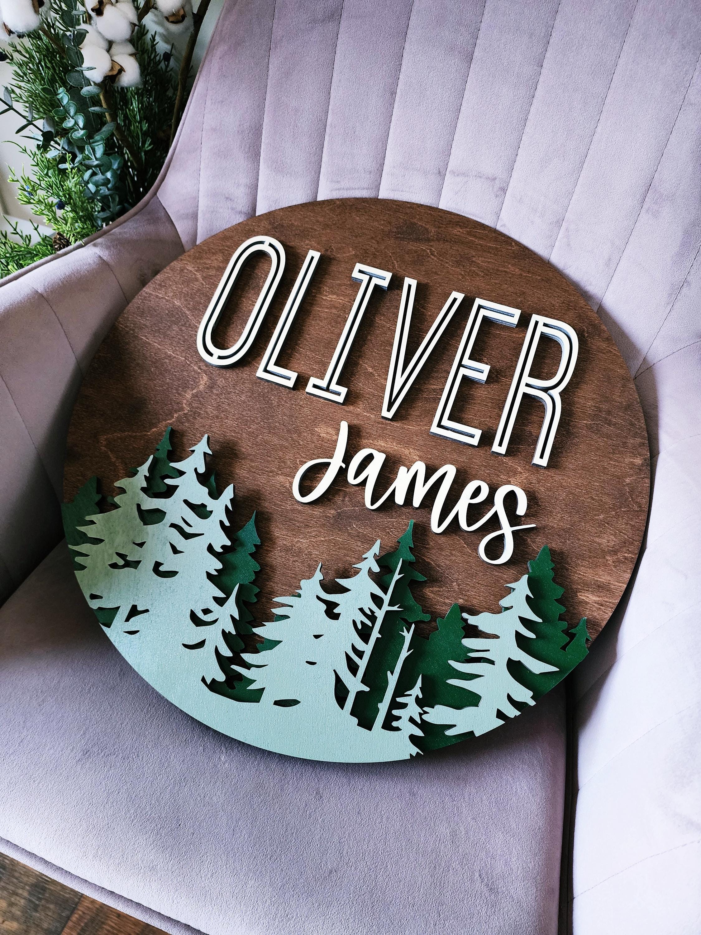 Custom Pine Tree Woodland Name Sign: Layered Wood Nursery Decor