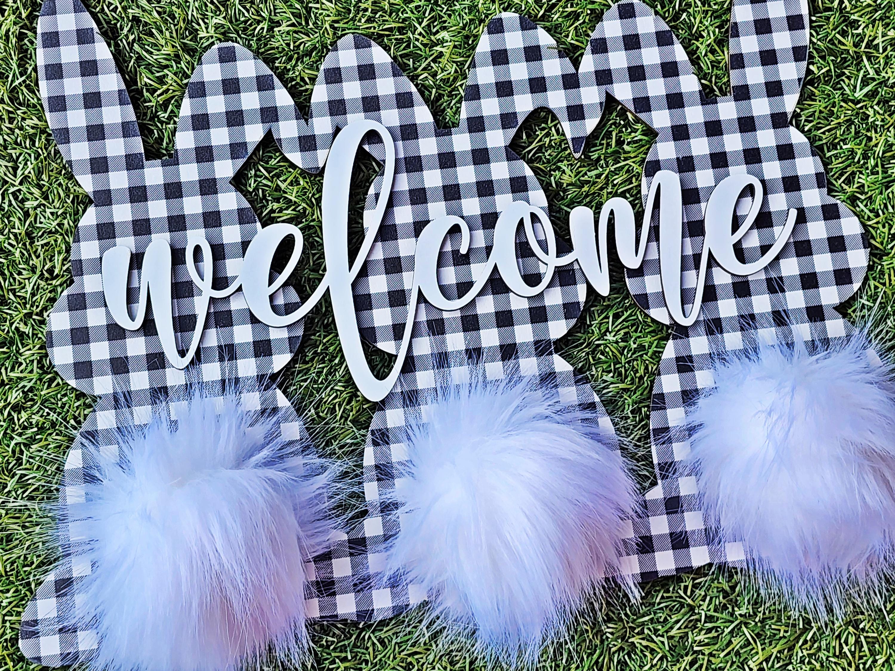 Custom Welcome Easter bunny sign | Personalized Easter door hanger | Easter wooden bunny wall sign decor | Entrance Easter decor