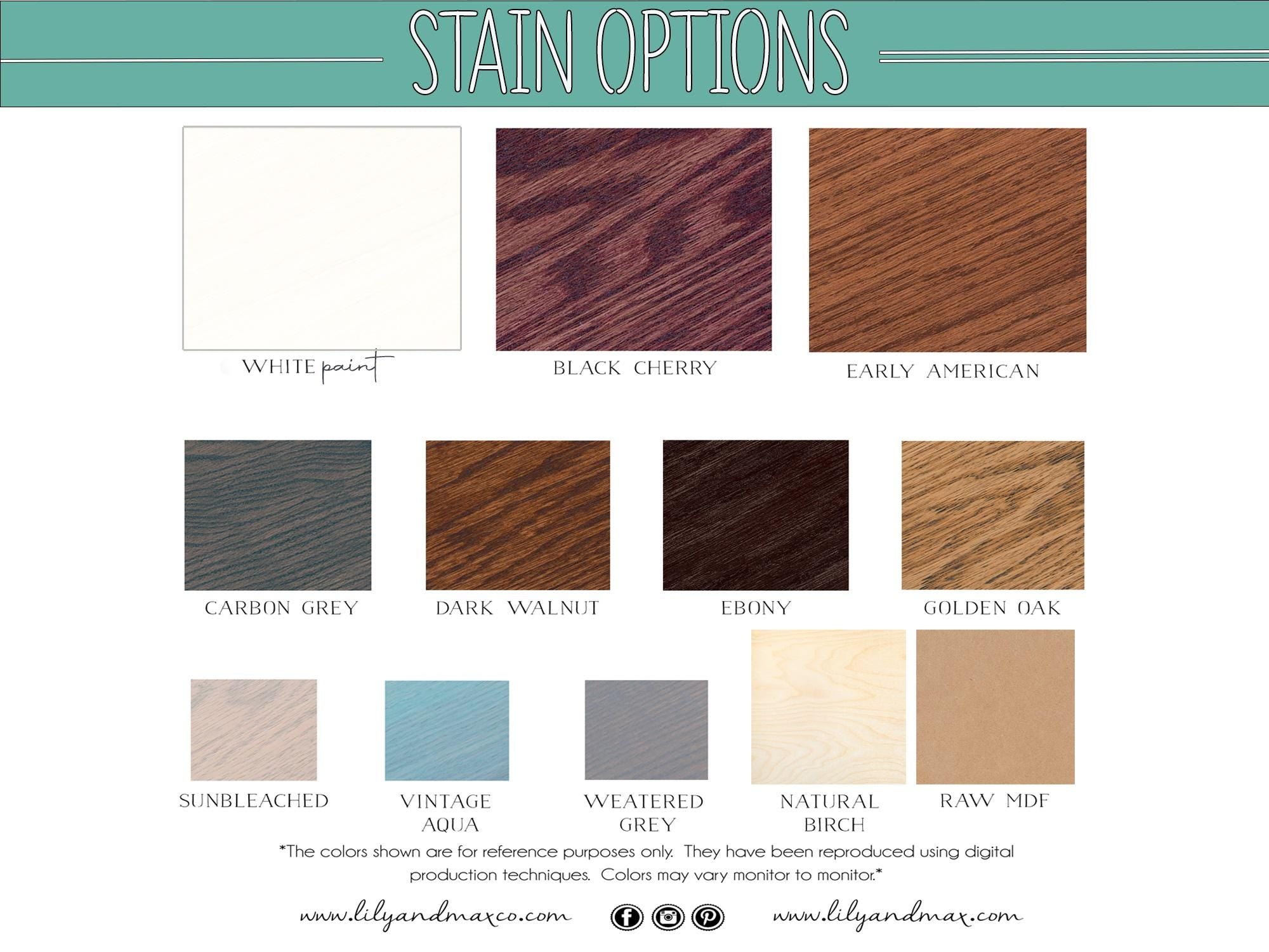 -You can select your BASE color from " STAIN OPTIONS" Chart.