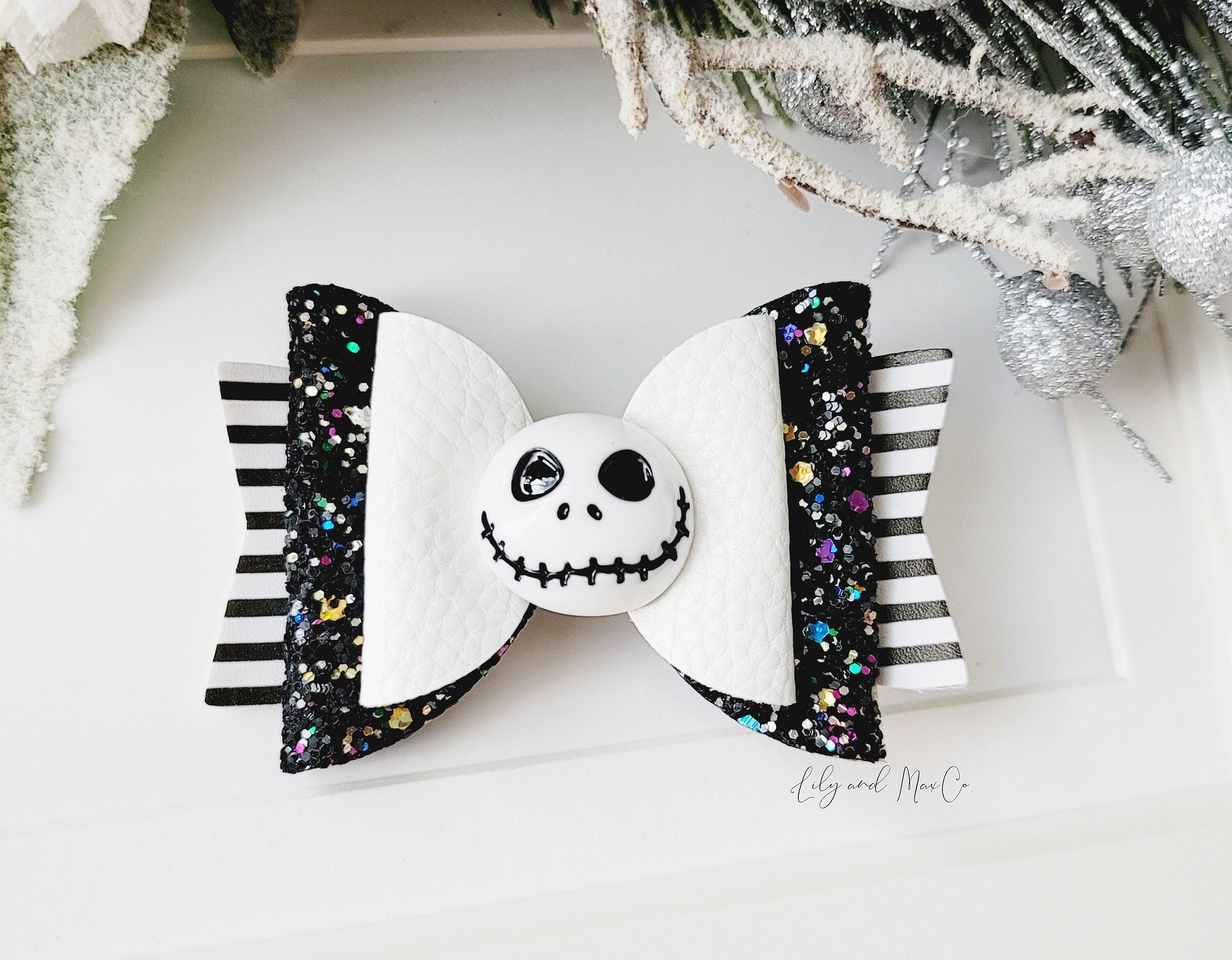 Girls Halloween Skeleton Bow Clip: Glitter Hair Accessory