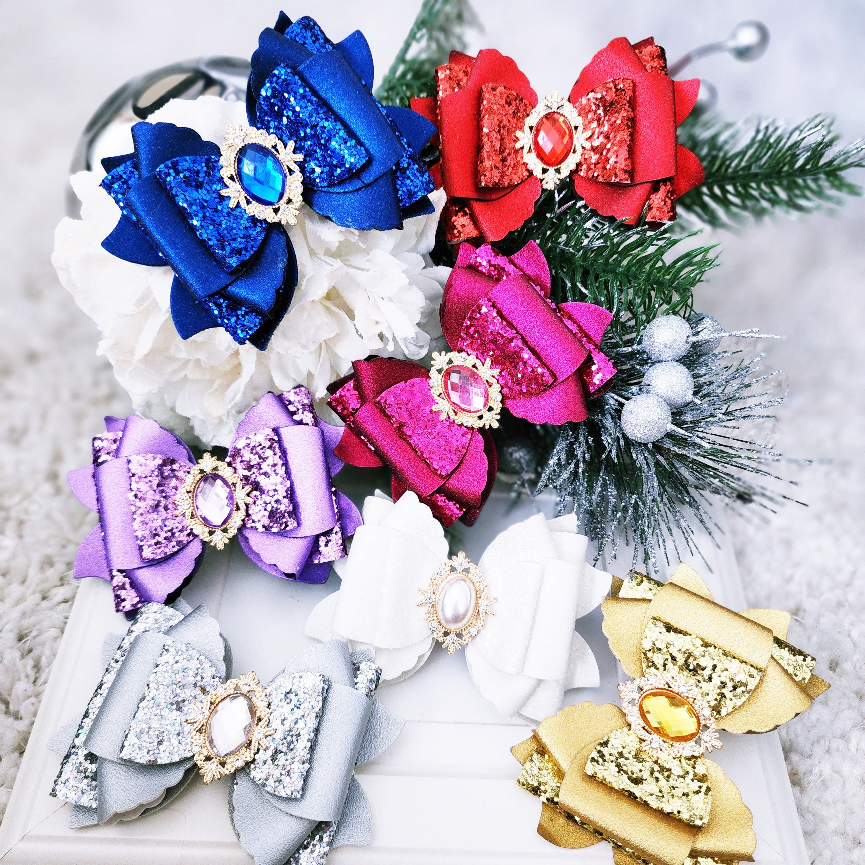 Glitter Holiday Bow Clip, Alligator Clip, Party Hair Accessory