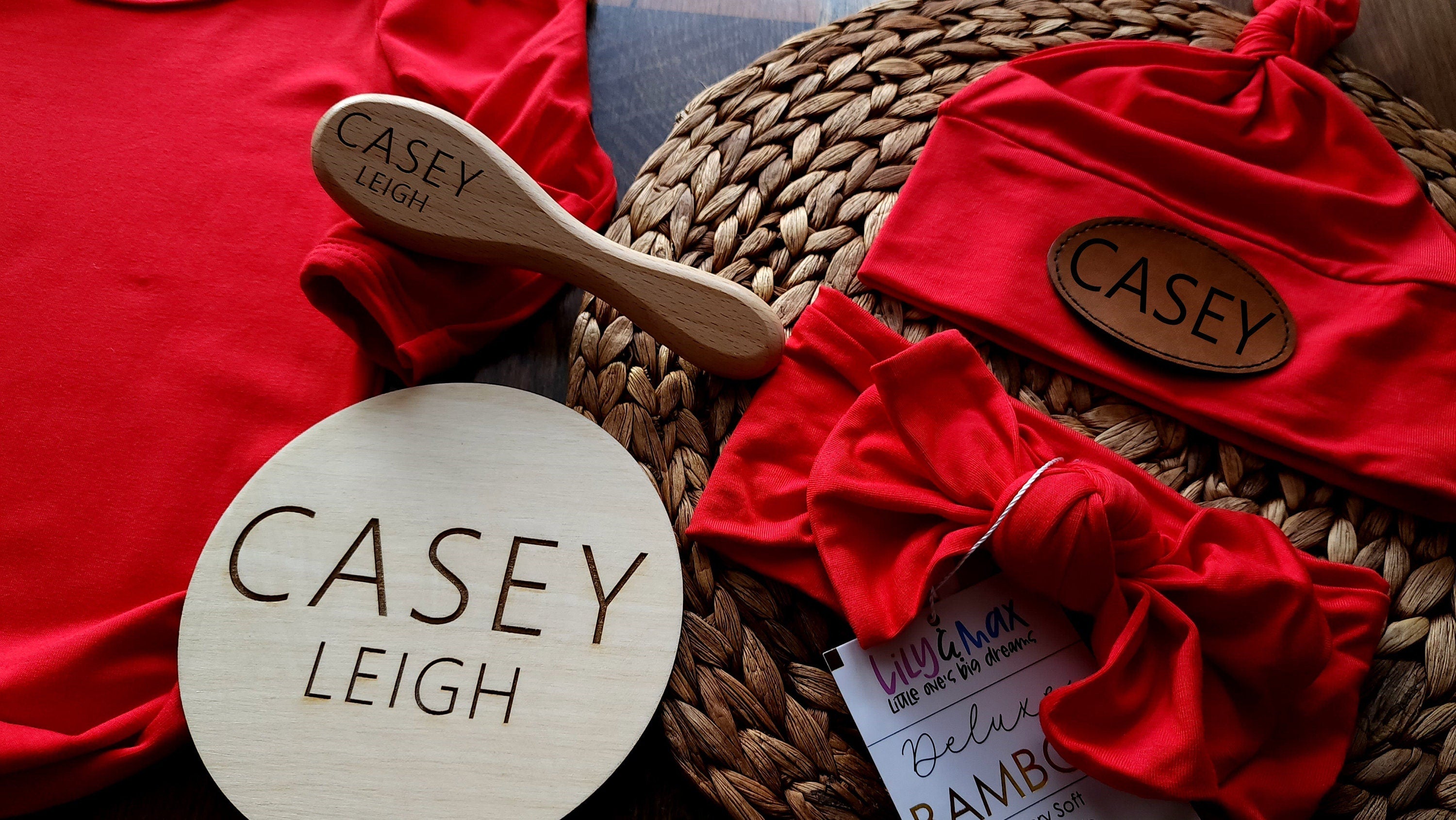Red Bamboo Baby Gown Set: Knotted Gown, Robe, Hat, Headband